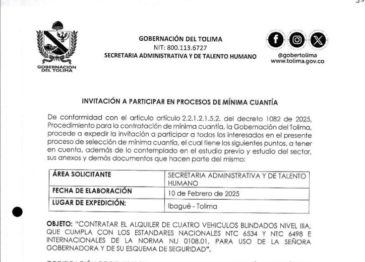 La reciente decisión de la Gobernación del Tolima de alquilar cuatro vehículos por $120 millones en solo un mes ha generado una fuerte controversia en la opinión pública.