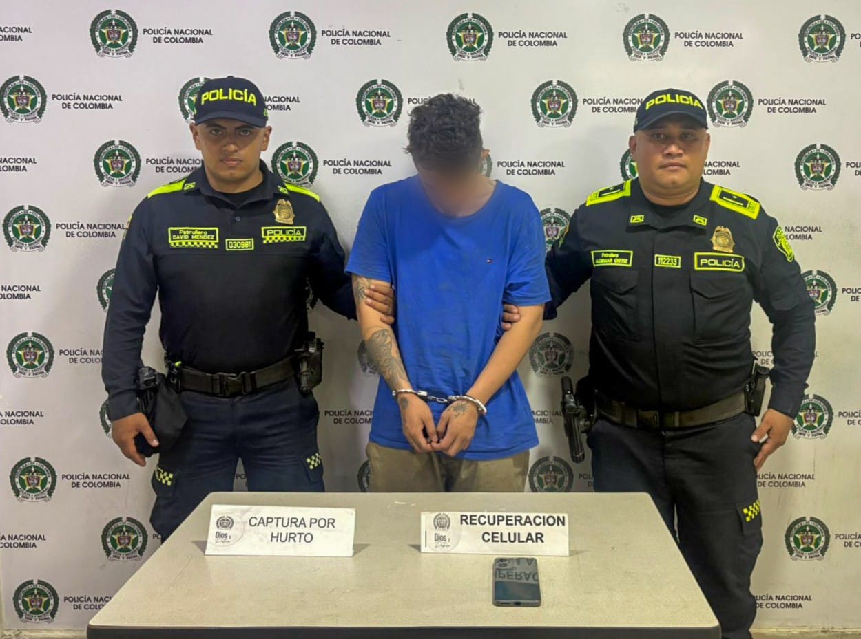 Durante el procedimiento, las autoridades encontraron en su poder el celular reportado como hurtado, el cual fue reconocido por la víctima.